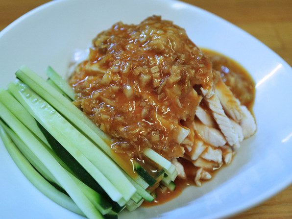 ●バンバンジーもピリ辛胡麻だれソースが鶏肉とよく合って旨。