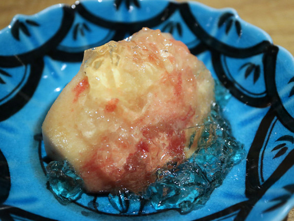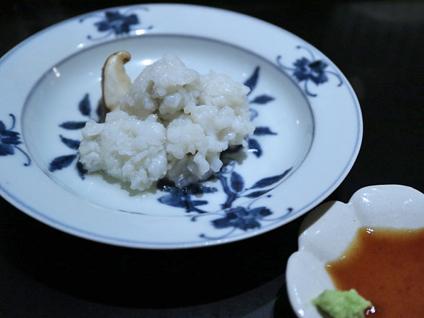 ●葛打ちされて、少しとろっとなめらかなな食感になった鱧。