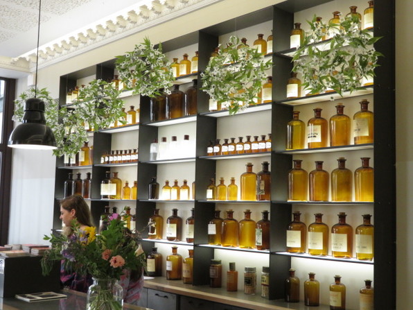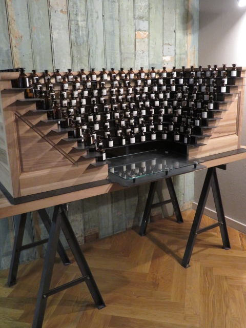 あまり香りのものに興味がなく、(タバコだけでなく、香水でもお香でも、鼻がよすぎて極端に感じ過ぎるという理由で)だからこのミュゼは知りながらも入ろうとしたことがありませんでした。けれど先日フランスのおみやげにこちらの香水をいただくことがあり、さらにごく近くを通ったので入ってみるかと。軽い気持ちで訪れたのに、熱中していろいろを見ることになりました。香水作りのプロセスやら調合のための「オルガン」やら、古い香水瓶のコレクション(実に美麗)、ラベルのコレクションなどなど。