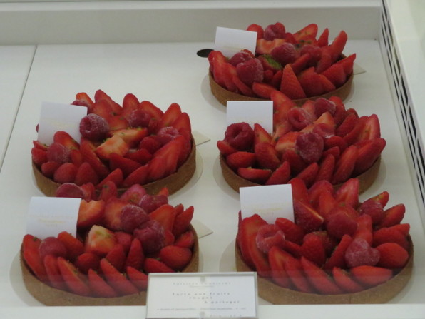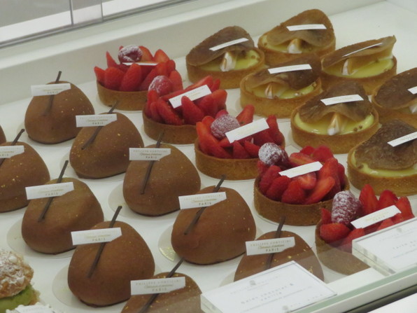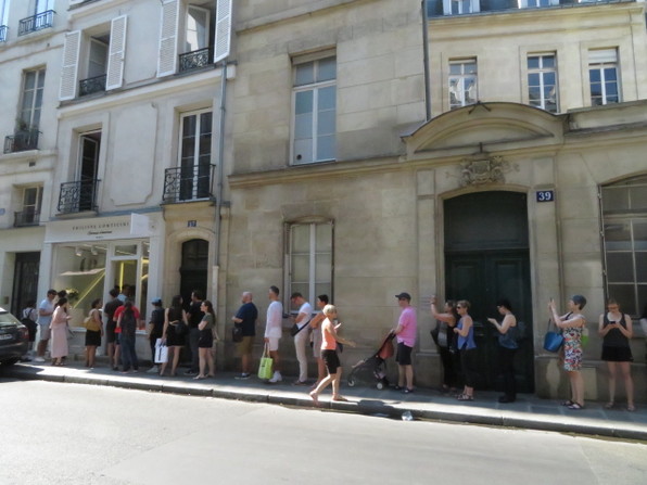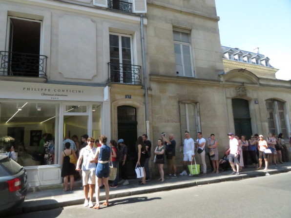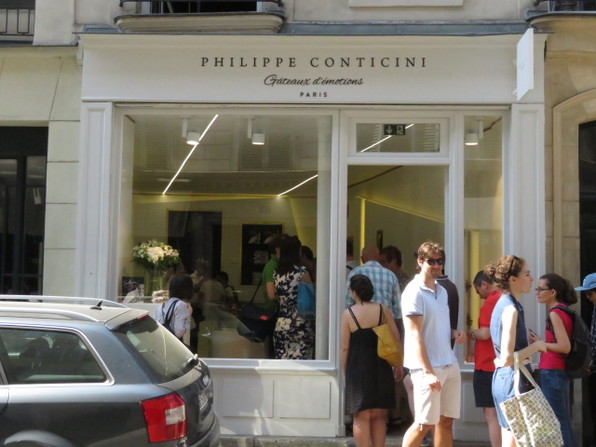 これまだプレオープンだそうな。お菓子少しでやってる試運転で、7月20日にいったん閉めて夏休み、9月に本当にオープンということでした。すでに直さないといけないところがいっぱいあるし、とも言ってらした。買う行列と、サインや直接話したい順番待ちで、老若男女並んでいてすごかった・・・ゆきぴいわく、パリにおいて、パティスリじたいがひどくブームなんだとか。