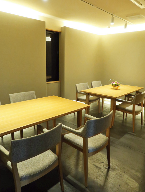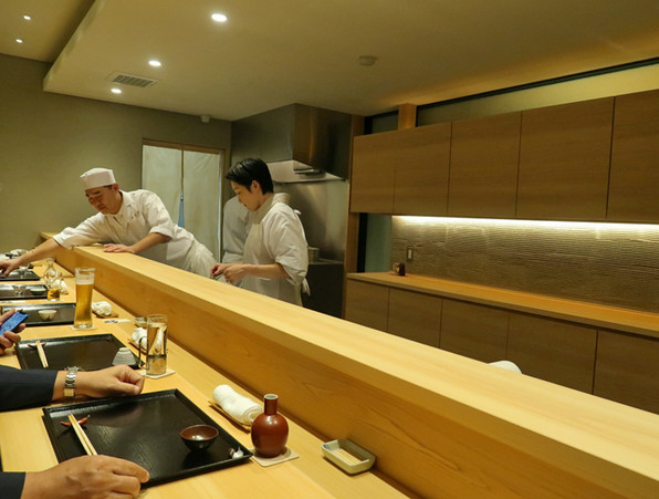 柾目がばしーーーっとまっすぐ通った檜のカウンターは8席、テーブルのお部屋はまだ稼働させていませんが4席✕2。
