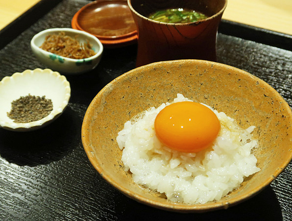 ●まず白ご飯でいただき、その後、卵をのせていただきました。卵白は泡立ててあります。