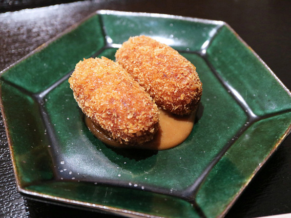 ●コロッケ、中には毛蟹の身がみっちりと。ソースも蟹風味で贅沢です。