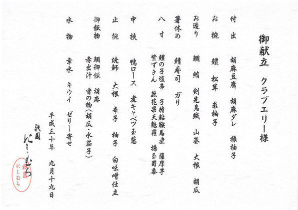 カウンター、お部屋、お部屋とお邪魔して、秋のお料理をいただきました。