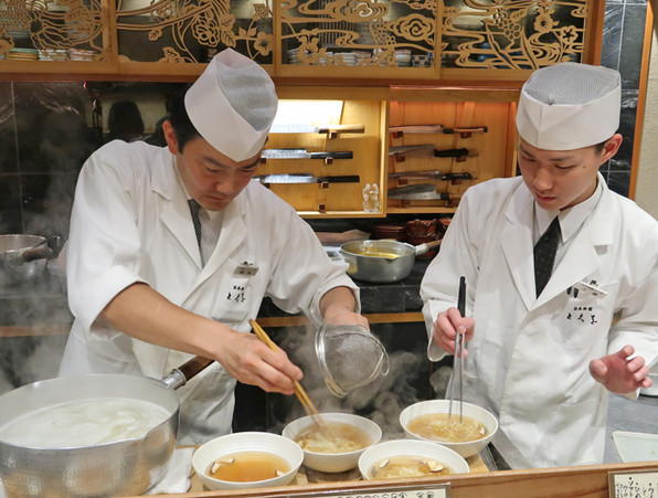 秋の美味満載のコースの後、締めに鱧だし、松茸入りのまかないラーメンをいただいたのです。