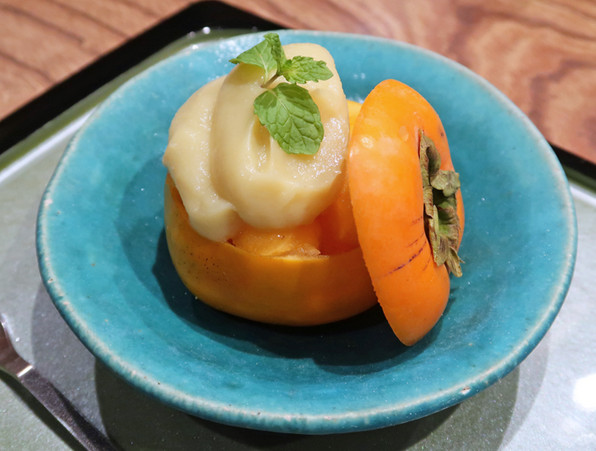 ●最後の甘味は柿に栗のソースです。わたしこれ大好きです\(^o^)/