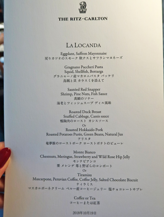 お世話になったのはザ・リッツ・カールトン京都の「ラ・ロカンダ」さん。クラブエリーで初の「ラ・ロカンダ」さんでした。