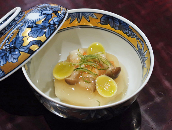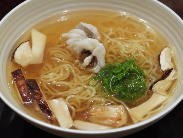 10月24日(水)昼、クラブエリー@「日本料理 とくを」さん、鱧松ラーメンのクラブエリー2回め。先週17日に続いてスペシャル秋メニュー盛り盛りの後、締めに鱧だし松茸入りラーメンを出していただきました。