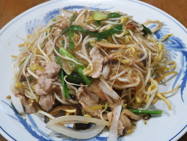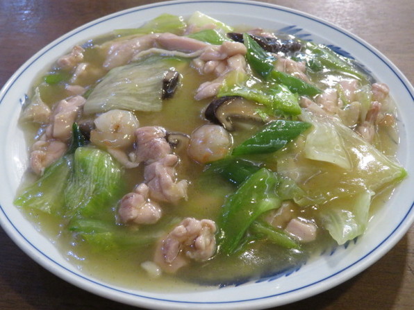●ヤキソバ 755円。揚げた、パリパリの麺に具材たっぷりのあんかけです。