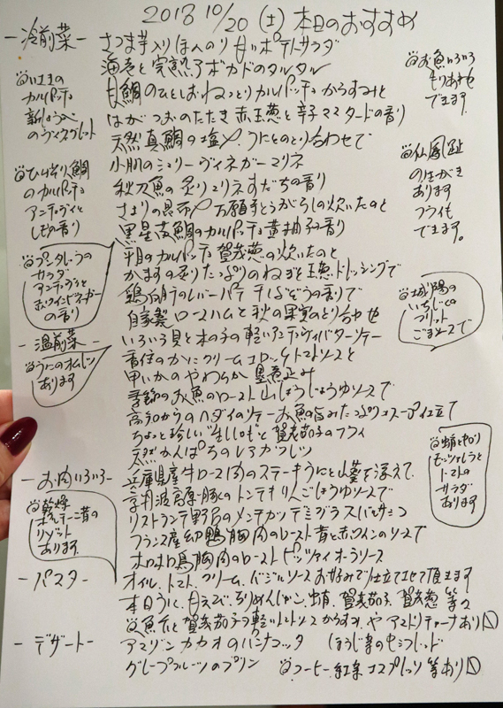 「リストランテ 野呂」、さかのぼって10月20日(土)の夜は、新刊祝いでMちゃんをもてなしました。