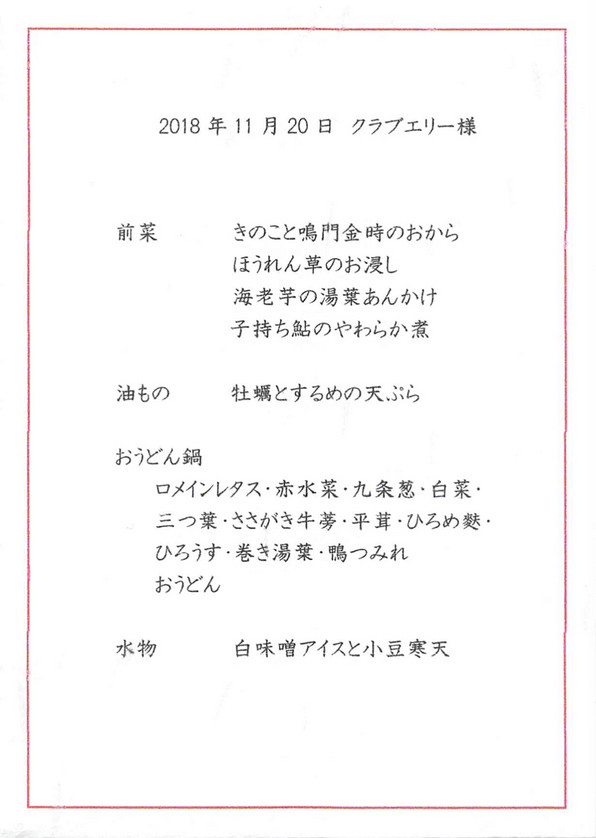 「仁王門 うね乃」さん、ふだんの営業をしながら2階でわたしたちのうどん鍋をしていただきありがとうございました。