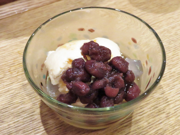 ●食後は白味噌アイスクリームと小豆と寒天の小さな甘味でなごみました。