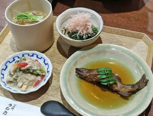 だしは、花かつおに厚削りのかつお、宗田かつおの他に、さば、いわし、うるめ節、そして利尻昆布から取っているとのこと。