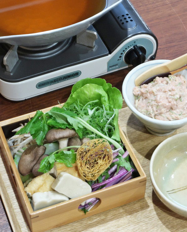 ●こんな風にセットされます。おだしが湧いたらひたすら具材を入れていきます。全くあくが浮いてこないのが謎でした。