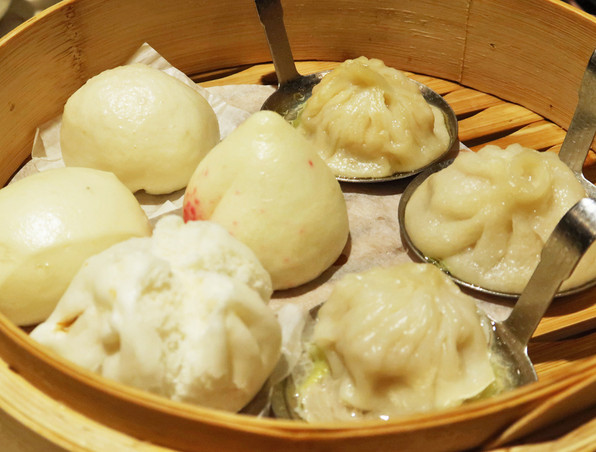 ●小籠包を3種類(シンプル版ほか、上海蟹味噌、ふかひれ)、花巻、桃饅頭も。