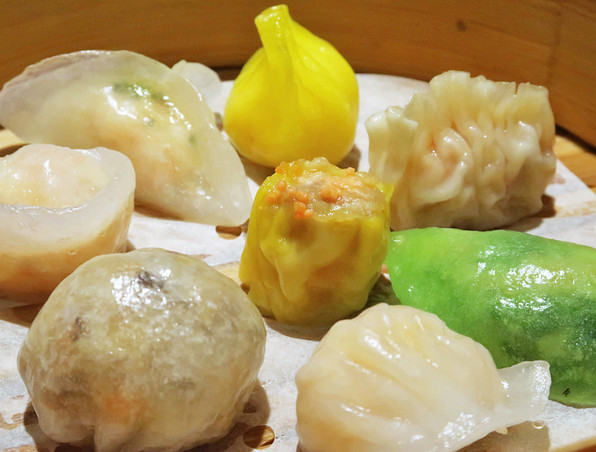 ふかひれや蟹や海老や帆立や貝柱やチャーシュー入りの蒸し餃子や焼売。