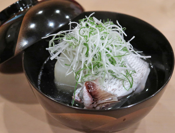 大根、紋甲いか、揚げた生麩、万願寺とうがらし。