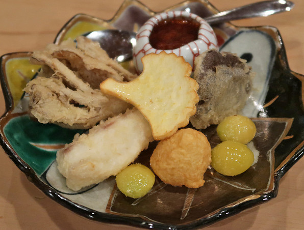 ●(抜いてもらった食材があったので)天ぷらがたくさんになった八寸。