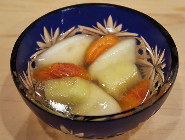 ●フルーツはジュレ寄せになっていて、マスクメロンとラ・フランス。