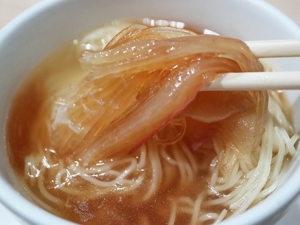 ●北海道から届いたたらこを使ったスパゲッティ。パスタは35g。上にセロリの葉。