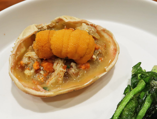 ●こっぺ蟹温製。「今日は生ものやめておこうかなあ・・・(でもちょっと食べたいし、の気持ち)」と言ったらこうなった。蟹だしで温めたこっぺの身やたまご、オリーヴオイル、上に雲丹。添えてあったのがプティヴェールのパリパリ素揚げ。いきなり旨旨旨でした。