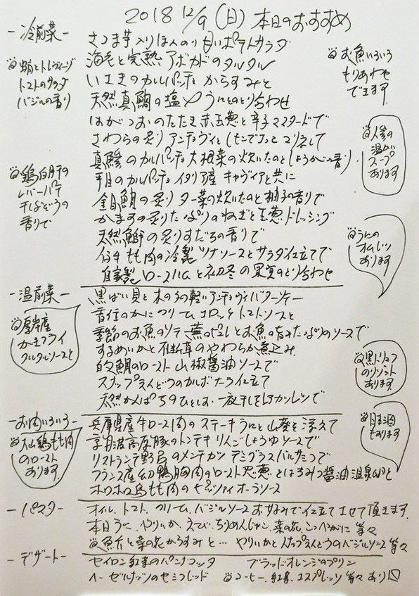 「リストランテ 野呂」12月9日(日)20時すぎ~です。