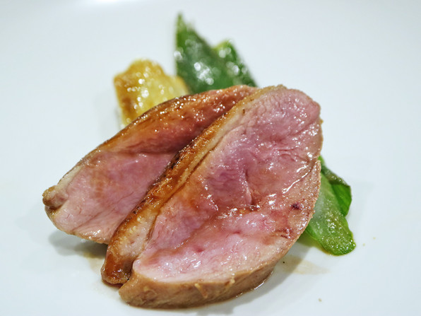 ●シャラン鴨、すき焼き風に甘辛くしたねぎと、温泉玉子