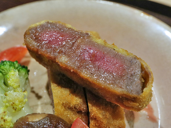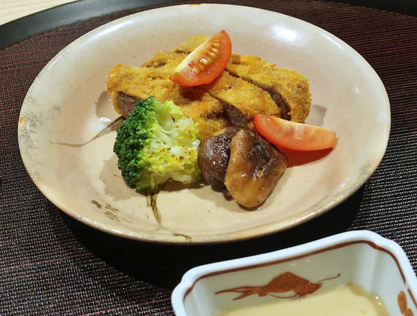●白神さくら牛のフライ。伏見のブロッコリー、久御山の椎茸、愛知のトマト(「プラムレッド」)。