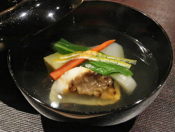 ●お椀はまながつお。修学院の丸大根、焼きねぎ、金時にんじん、伏見の青梗菜。柚子がふわああああと香りました。
