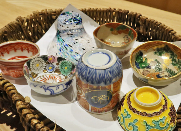 ●ご実家の器の名店「観山堂」さんで妹さんが揃えてくださったというお猪口のコレクション。