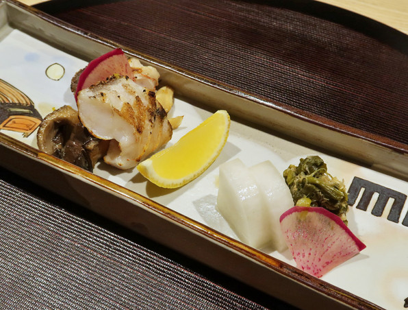 ●若狭ぐじの塩焼き。平茸、かぶら、紅くるり(大根)、大根昆布締め