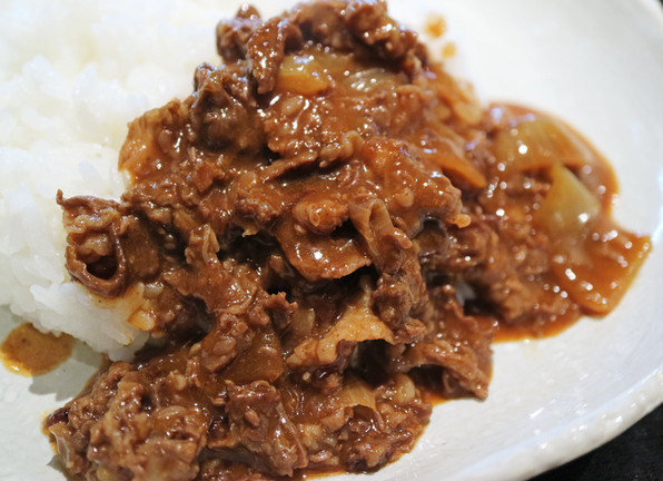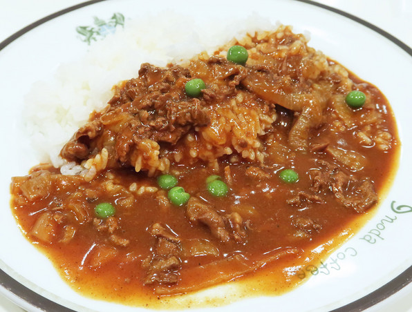 そして(いつも書いているけれど)ハヤシライスのソースというのではなく、たっぷりの薄切り牛肉のソース和え、という感じです。みっちりびっちり牛肉が入っています。