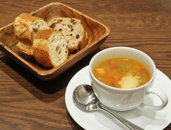 ●スープとサラダとパン付きで1450円(17時までのお値段)、カフェは別料金だけど300円。