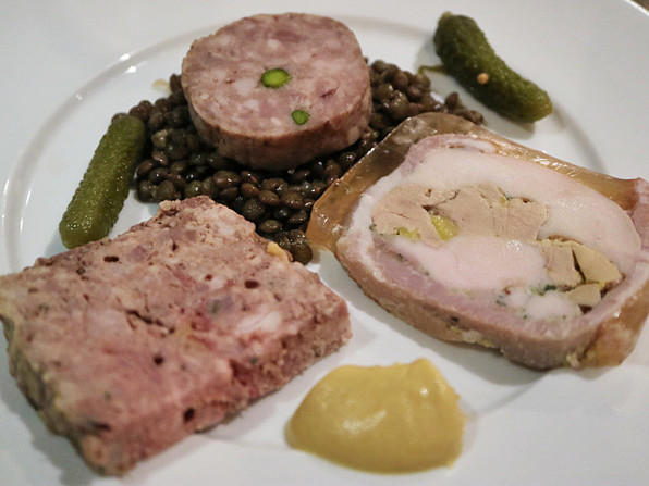 ●シャルキュトリ3種類とレンズ豆、コルニション。