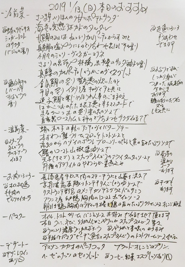1月13日(日)夜「リストランテ 野呂」の記録。3名で。