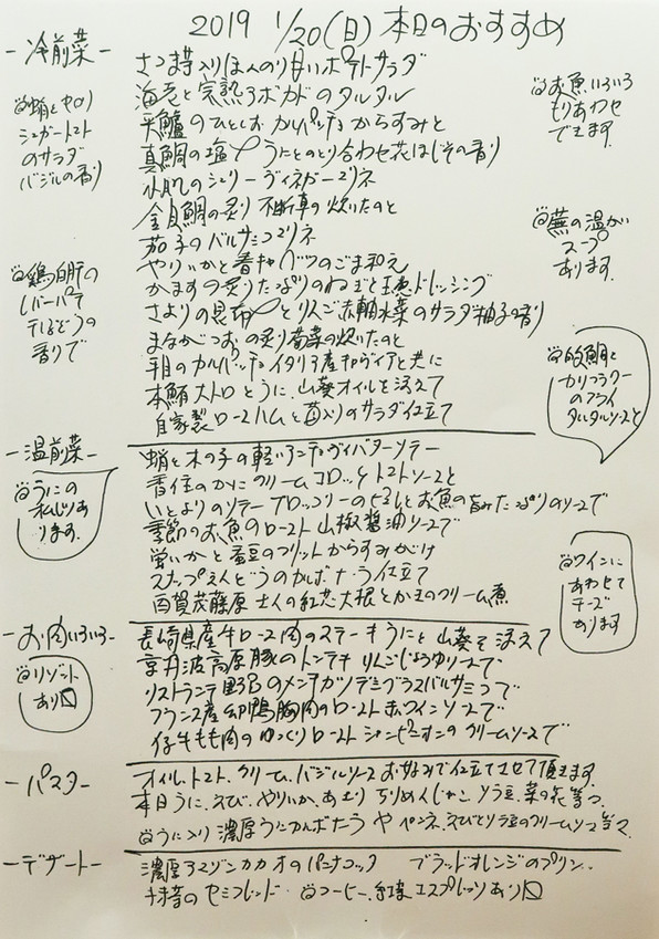 1月20日(日)「リストランテ 野呂」、いつもより早く20:00スタート。