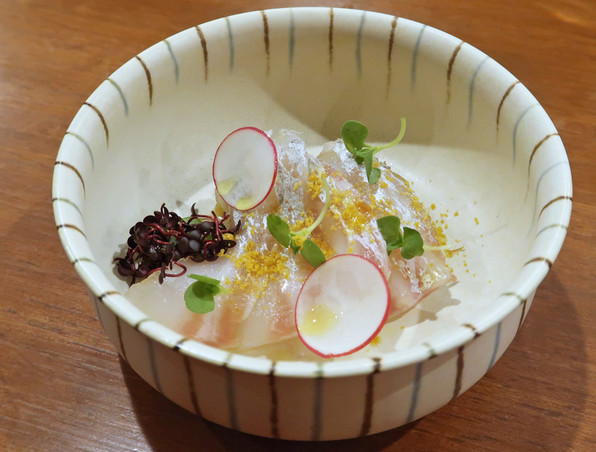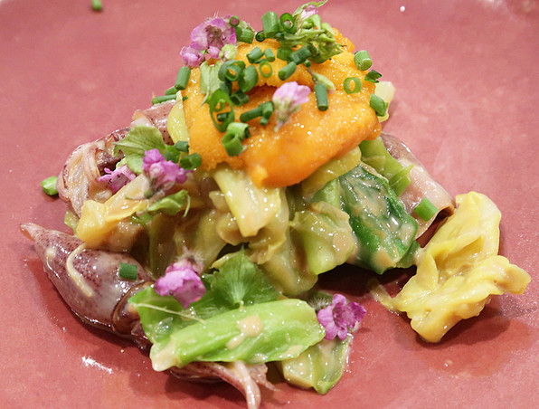 ●ひと皿め、春キャベツとほたるいかの胡麻和え、雲丹です。