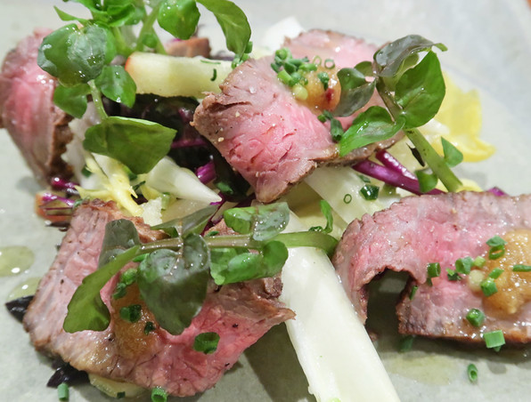 ●ローストビーフ。アンディーヴ、赤水菜、りんご(ふじ)。