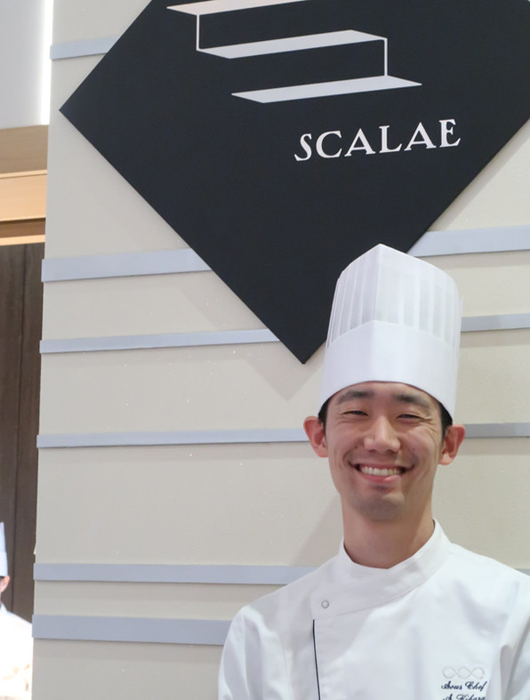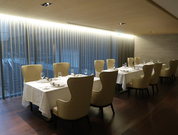 ●イタリアン「SCALAE (スカーラエ)」は110席、朝食会場も兼用。コの字形カウンターは夜のみ、14000円(税サ別)のスペシャリテのコースのみということでした。テーブル席は椅子がとても座り心地がよかったです。個室3室あり。