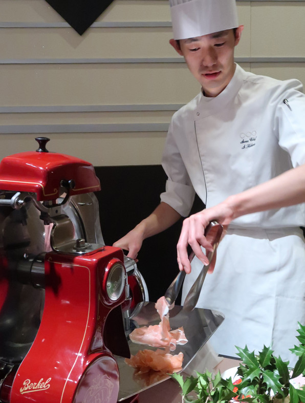 ●そしてそして、生ハム上手にスライスしている人がいるなーと思ったら「京都ネーゼ」からこちらに移った木原章太さん、イタリア料理の副料理長です。