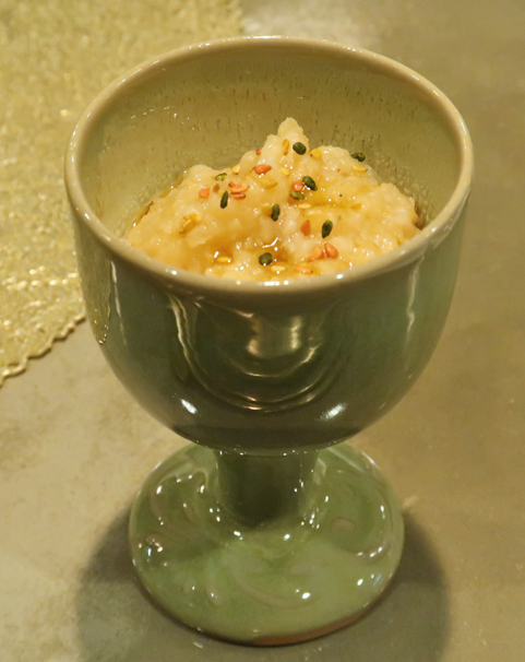 ●玄米のお粥。上にかけられた胡麻油がエレガントな香りでした。