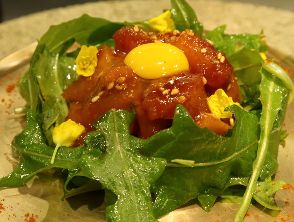 コース料理をいただいたのですが、ほんとーーーーによかった、おいしかった\(^o^)/\(^o^)/ 野菜を多彩にたっぷり使い、そのおいしさを生かして細やか。胡麻油の香りは優美。ユッケもナムルも熱々の点心も申し分なくおいし☆☆☆ そして締めはお鍋です。ちょっと辛い、けれど香り豊かなスープに麺やら生ハムやらフロマージュを投入します。最後に麺。これは旨いわたまらんわ~~( ̄○ ̄;)( ̄○ ̄;)