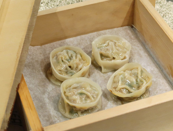 ●マンドゥー、蒸し餃子。中に合いびき肉、にんじん、キムチ、豆腐、干椎茸、にら。
