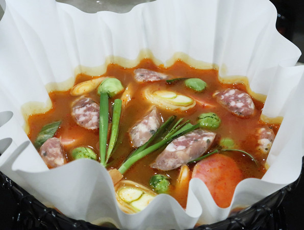 ●じゃがいも製の麺に生ハム、米粉製のトッポギに、モッツァレラとブリー。