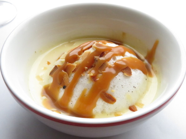 わたしはオニオンスープ、ブランケットドゥヴォー、野菜のスープ煮、イルフロッタントと注文、飲み物はペリエ500CC。これで23ユーロww