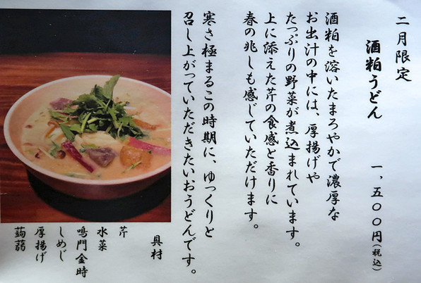 2月の限定の酒粕うどんを逃さずいただかなければなりません。