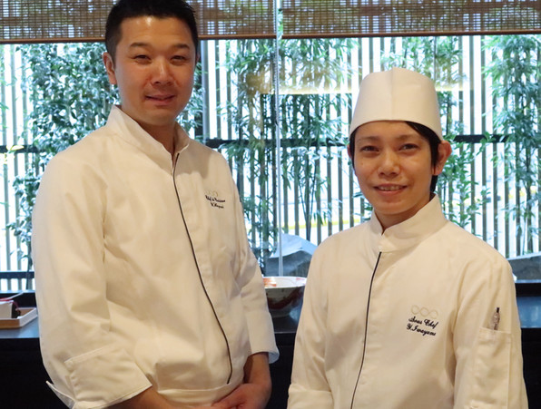 ●料理長の早見義昭さん(「吉兆」さん→「水暉」さん)と、副料理長のやっちゃん=岩山泰久さん(「柊家」さん→「京甲屋」さん、時々「観山」さん)。