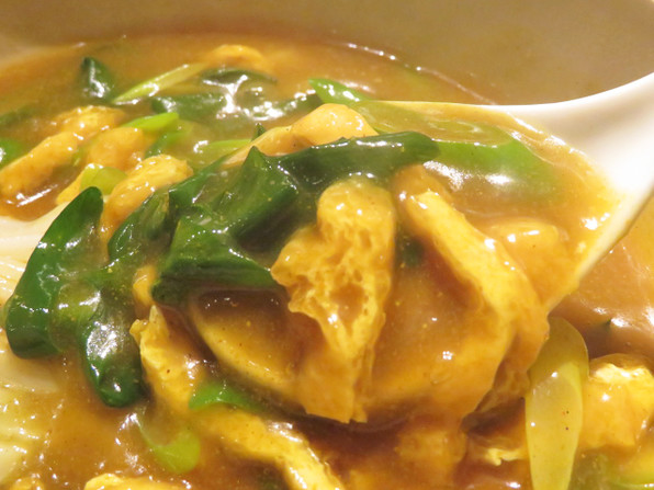 きつねカレーです。たぬきたぬきと思っていたのに、出かけた日はカレーの気持ちになっていて。