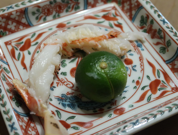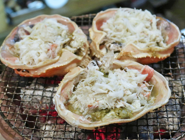 ●焼き蟹は脚、脚、脚、脚、爪、という具合に5回にわたって供されました。