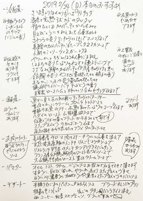2月24日(日)りすのろへ。20時30分~「リストランテ 野呂」です。